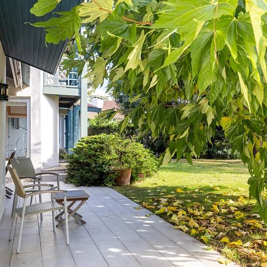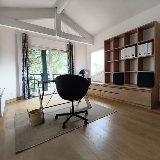 Dans un quartier calme de Chiberta à l'abri des regards, belle villa meublée d'une surface de 226 m2 posée sur un terrain plat et arboré avec piscine sécurisée, grand garage. La maison se compose, d'une vaste entrée, d'une cuisine aménagée et équipée avec une jolie vue sur le jardin, un espace déjeuner, un double séjour cheminée avec accès terrasse, un bureau en mezzanine, un coin détente, une suite parentale avec dressing, un accès sur terrasse jardin & piscine, 3 chambres avec placards, une salle de bains, une salle d'eau wc pour la partie...