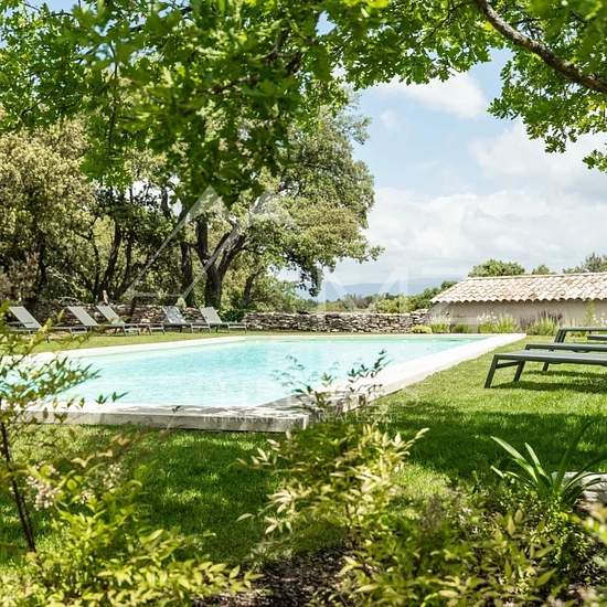 En lisière de Bonnieux, avec une vue panoramique sur le Mont Ventoux et les collines environnantes, se dresse ce superbe Mas de près de 300 m² ayant fait l'objet d'une restauration soignée, et articulé autour d'une belle cour intérieure avec terrasse. Implanté au milieu d'un vaste jardin de plus de 8000 m² de prairie, chênes verts, cerisiers, cyprès et lavandes, il intègre une longue piscine chauffée de 14 x 6 m pour vos moments de détente. Les beaux volumes intérieurs proposent une fraîcheur et une luminosité naturelles, avec un espace de c...