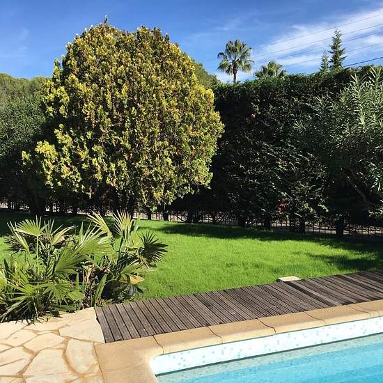 A propos de ce bien Idéalement située dans le domaine fermé de La Peyrière entre Mougins School et le Golf, grande et luxueuse Villa de 318 m2 habitables à louer en Meublé Longue Durée. Elle se compose de 9 pièces, dont 6 belles chambres, 1 grand séjour plus 1 grande salle à manger, 1 bureau et 3 salles de bain/douche, ainsi qu'une grande cuisine. Sur 3 niveaux (1er, RDC, Rez de jardin) elle offre une splendide vue panoramique sur la campagne. A l'extérieur elle dispose d'un beau jardin provençal de plus de 1600 m2 avec un grande piscine au...