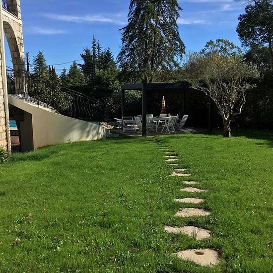 A propos de ce bien Idéalement située dans le domaine fermé de La Peyrière entre Mougins School et le Golf, grande et luxueuse Villa de 318 m2 habitables à louer en Meublé Longue Durée. Elle se compose de 9 pièces, dont 6 belles chambres, 1 grand séjour plus 1 grande salle à manger, 1 bureau et 3 salles de bain/douche, ainsi qu'une grande cuisine. Sur 3 niveaux (1er, RDC, Rez de jardin) elle offre une splendide vue panoramique sur la campagne. A l'extérieur elle dispose d'un beau jardin provençal de plus de 1600 m2 avec un grande piscine au...
