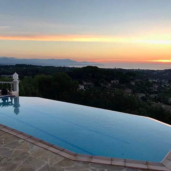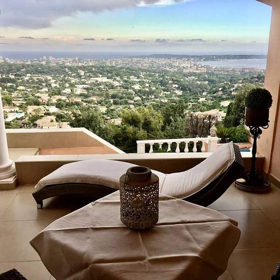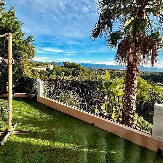 A propos de ce bien Une superbe vue panoramique sur la mer et les montagnes Idéalement située dans un quartier résidentiel sur les hauteurs de Vallauris et surplombant Golfe- Juan, le Cap d’Antibes jusqu’à la Riviera italienne et les Préalpes, cette villa est à 10 minutes des plages, 15 minutes de Cannes et Antibes et 30 minutes de l’aéroport international Nice Côte d’Azur. Vous profiterez de ses larges terrasses et de la piscine à débordement de 13 mètres plongeant dans la mer et équipée d’une alarme. La villa développe env. 320 m2 sur 2 n...