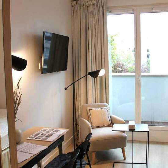 Furnished studio apartment for rent in Paris. The property includes common terrace and rooftop, kitchenette, common gym, common home cinema, weekly cleaning and maintenance services in a new residence. The property is on the 1st floor of a building with elevator. Description of the property (500 characters): Why choose Finestate Mairie d’Issy? Experience something unique in an exceptional setting: 500 m² of common spaces (rooftop, gym, etc.) to work, relax, or socialize, with services (cleaning, maintenance, security, etc.) included for ...