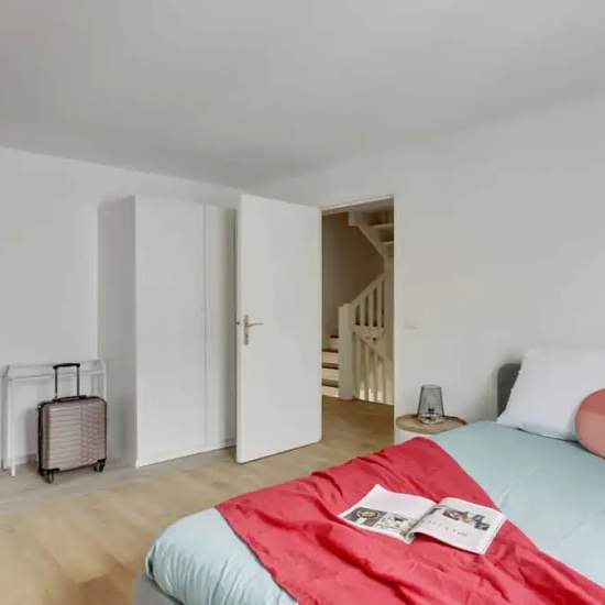 This lovely private bedroom in a fully equipped, furnished and all-inclusive flatshare in Asnières-sur-Seine is a mix of comfort and design. It has got household furnishings, including a bed with pillows and duvet What is missing is your things to feel at home! The room can be locked if you need intimacy. The flatshare can be found in the Asnières-sur-seine neighborhood, in the heart of Asnières-sur-Seine. Plenty of shops, public transports, restaurants are accessible close by. The apartment is on floor 0 without lift. It is entirely equippe...