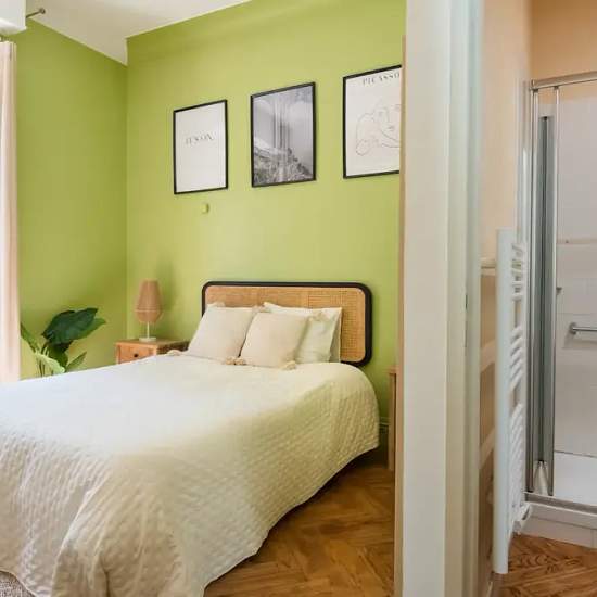 Room of 13m², fully furnished. It has a double bed (140x190) accompanied by a bedside table with lamp and a large mirror at the head of the bed. A work area is included, composed of a desk with chair and lamp. The room also offers several storage spaces: a wardrobe with hanging space and a shelf. The main features of this room are its private bathroom and its direct access to the garden. Located in the Saint-Genes district, this 163m² house benefits from an ideal location, close to the University of Bordeaux (Campus Carreire) and near all am...