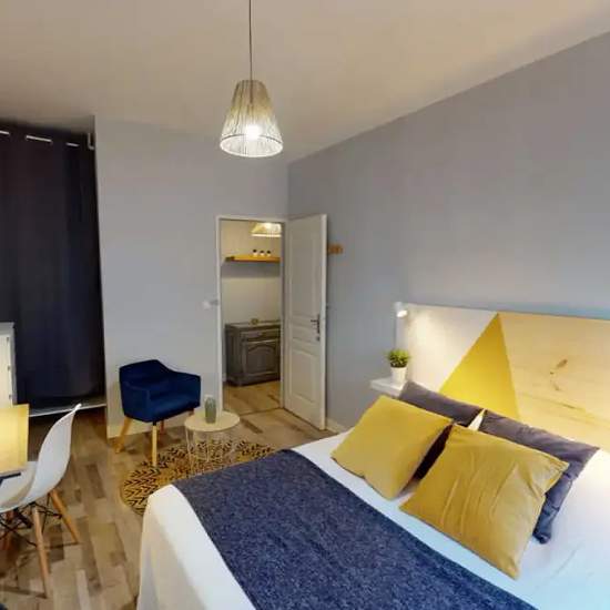 This lovely private bedroom in a fully equipped, furnished and all-inclusive flatshare in Bordeaux is a mix of comfort and design. It has got household furnishings, including a bed with pillows and duvet What is missing is your things to feel at home! The room can be locked if you need intimacy. The flatshare can be found in the Capucins - Victoire neighborhood, in the heart of Bordeaux. Plenty of shops, public transports, restaurants are accessible close by. The apartment is on floor 0 without lift. It is entirely equipped and is composed o...