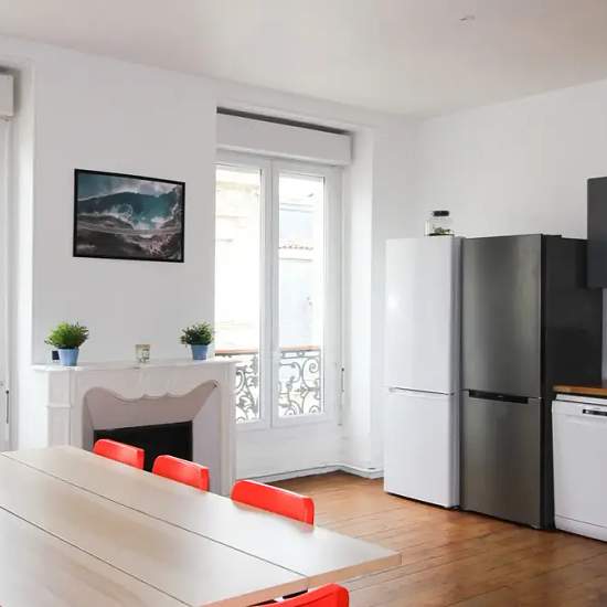 Room of 9m², fully furnished. It has a double bed (140x190) and a bedside table with lamp. A working area is included, composed of a desk with chair and lamp. The room also has storage space: a wardrobe with hanging space and a shelf. The room also has an armchair. Located in the city centre of Bordeaux, this 166m² flat is ideally situated a few steps from the Museum of Decorative Arts and Design and close to all amenities. The flat is on the 4th floor of a secure building with a lift. The flat is composed of 7 rooms, a kitchen, a bathroom, ...