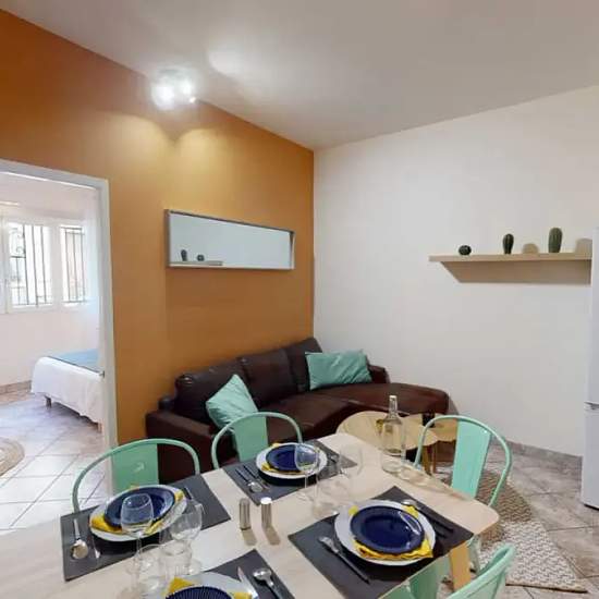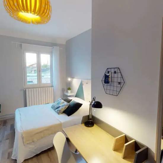 This lovely private bedroom in a fully equipped, furnished and all-inclusive flatshare in Bordeaux is a mix of comfort and design. It has got household furnishings, including a bed with pillows and duvet What is missing is your things to feel at home! The room can be locked if you need intimacy. The flatshare can be found in the Capucins - Victoire neighborhood, in the heart of Bordeaux. Plenty of shops, public transports, restaurants are accessible close by. The apartment is on floor 0 without lift. It is entirely equipped and is composed o...