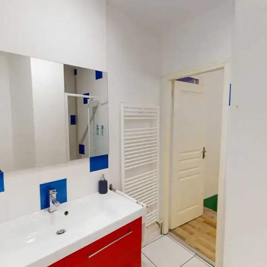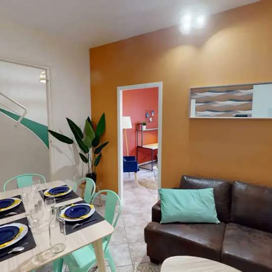 This lovely private bedroom in a fully equipped, furnished and all-inclusive flatshare in Bordeaux is a mix of comfort and design. It has got household furnishings, including a bed with pillows and duvet What is missing is your things to feel at home! The room can be locked if you need intimacy. The flatshare can be found in the Capucins - Victoire neighborhood, in the heart of Bordeaux. Plenty of shops, public transports, restaurants are accessible close by. The apartment is on floor 0 without lift. It is entirely equipped and is composed o...