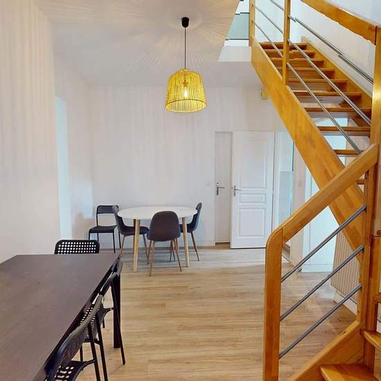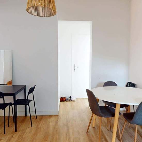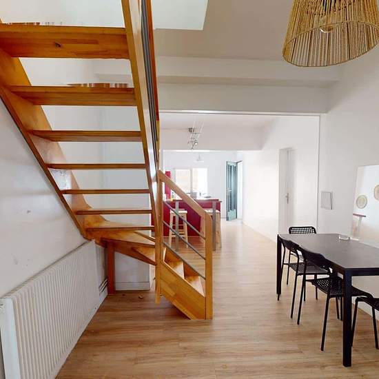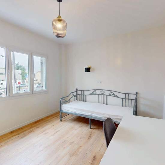 Oqoro vous présente cette colocation 9 chambres dans une maison de 220 m² située au 40 rue Louis Mondaut à Cenon. LA CHAMBRE La chambre 6, située au 1er étage, en haut à gauche des escaliers, dispose d'un lit simple, d'un burerau et de rangements ainsi que d'une penderie. Elle est lumineuse. Le petit plus : le frigo privatif. LES ESPACES COMMUNS Cette maison s'ouvre sur un spacieux séjour avec cuisine ouverte. Celui-ci dispose de deux tables avec 8 chaises, idéales pour partager des repas entre colocataires. La cuisine est équipée d'un fou...