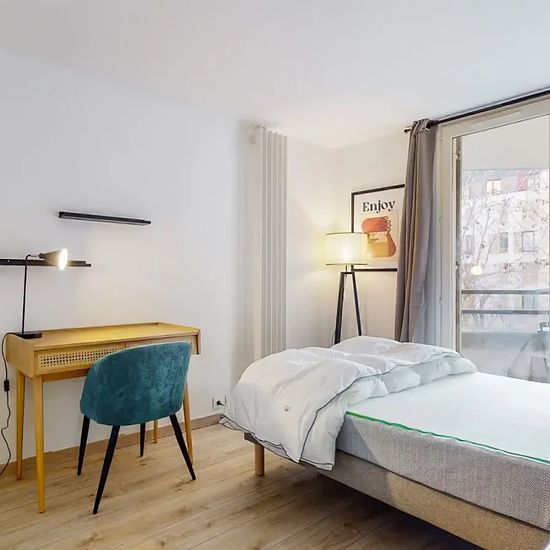 Looking for a cozy space to share in Champs-sur-Marne? This room in an 8-bedroom shared apartment might be your next home. The room is well-equipped with furnishings including a desk for work or study, chest drawers, and storage. Spotahome landlords are fully vetted, ensuring peace of mind. Champs-sur-Marne is a charming municipality with amenities nearby. Within walking distance, you can find the G20 market for groceries and daily essentials. Enjoy dining options like Pizzeria Mafia, Dameyo fast food, and Île Aux Bokit Caribbean cuisine. Fo...