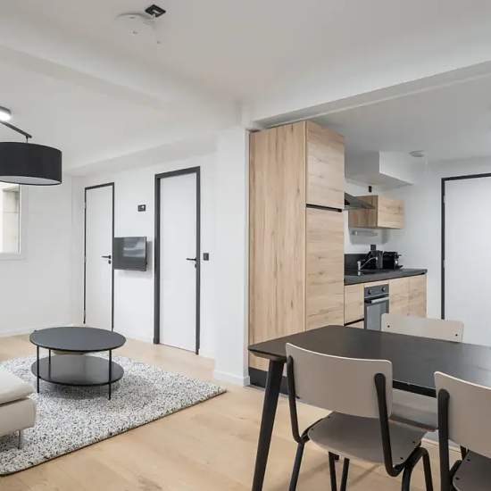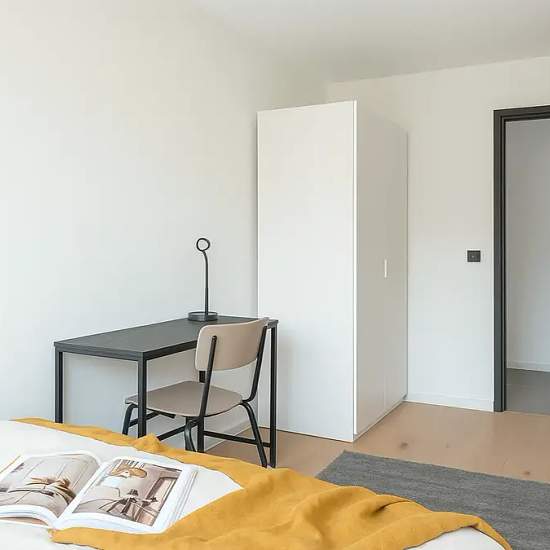 Our rooms are fully furnished with everything you need. In the bedroom area, you will find a bed with a comfortable mattress, as well as a bedside table, small lamp, and wardrobe. The bedroom is also equipped with a desk and chair, so you can easily work or study from home. Please note: Bedsheets are not provided, allowing you to personalize your space the way you like it! Our location in Paris is the ideal place to experience the vibrancy of the city while being part of the Habyt community. With a total of 24 flats and 32 rooms, the buildin...