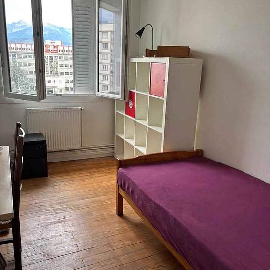 Appartement très bien situé sur Grenoble, transports en commun devant l'immeuble, commodités et commerces à proximité, chambres encore disponibles de 18 et de 10 mètres carrés. Très belles vues sur les Alpes, prix correct, cuisine équipée, et chambres avec lits et bureau.