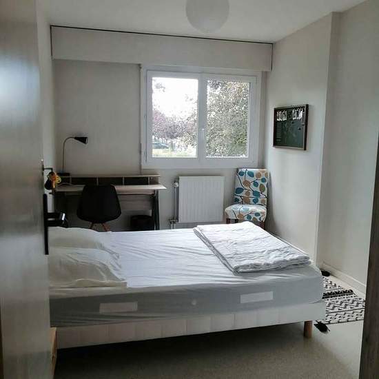 Chambre meublée disponible dans colocation (5) à partir de Février 2026 Grand appartement lumineux traversant de 117m2, situé au 2ème étage avec ascenseur, sans vis à vis et donnant sur espace vert. Résidence très calme située proche du centre, des écoles, de l'Université et de l'axe Nantes - La Roche sur Yon. Loyer 340€ +80€ charges La chambre est équipée de : - 1 lit double - 1 bureau + chaise - 1 dressing - 1 couette +oreiller (plus qu'a poser ses affaires personnelles - 1 balcon Les espaces communs du logement sont : - 1 entrée, - 1 cuis...