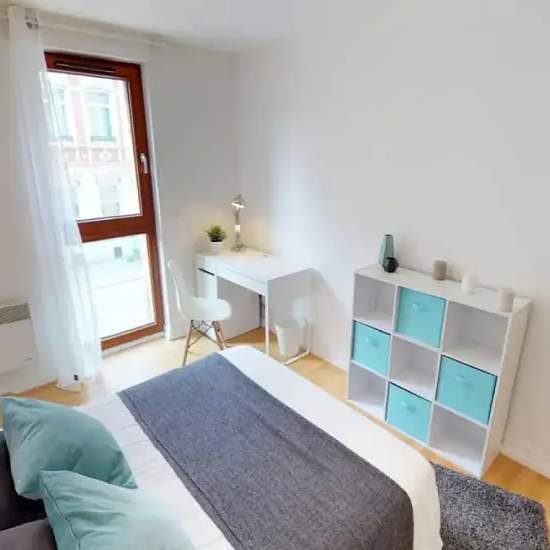 This lovely private bedroom in a fully equipped, furnished and all-inclusive flatshare in Lille is a mix of comfort and design. It has got household furnishings, including a bed with pillows and duvet What is missing is your things to feel at home! The room can be locked if you need intimacy. The flatshare can be found in the Saint Sauveur neighborhood, in the heart of Lille. Plenty of shops, public transports, restaurants are accessible close by. The apartment is on floor 1 with lift. It is entirely equipped and is composed of a large kitch...