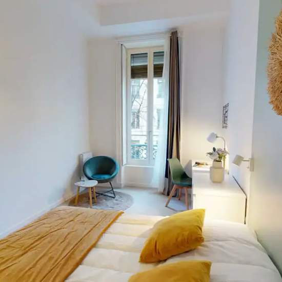 This lovely private bedroom in a fully equipped, furnished and all-inclusive flatshare in Lyon is a mix of comfort and design. It has got household furnishings, including a bed with pillows and duvet What is missing is your things to feel at home! The room can be locked if you need intimacy. The flatshare can be found in the Cordeliers neighborhood, in the heart of Lyon. Plenty of shops, public transports, restaurants are accessible close by. The apartment is on floor 2 with lift. It is entirely equipped and is composed of a large kitchen wi...
