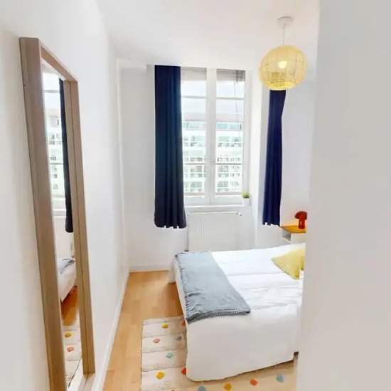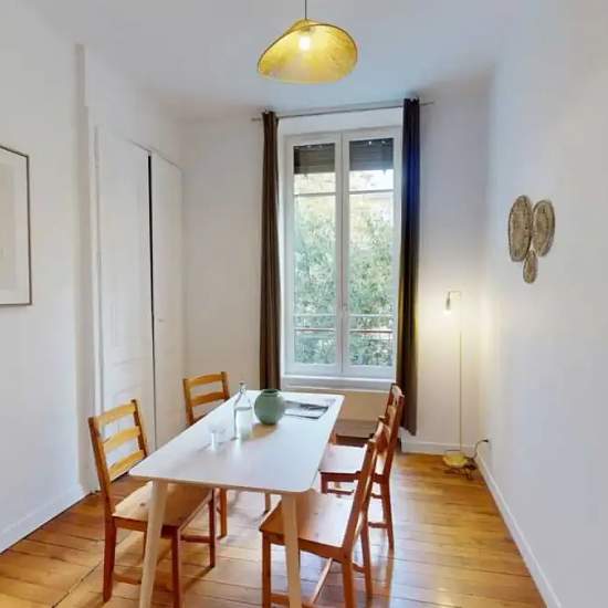This lovely private bedroom in a fully equipped, furnished and all-inclusive flatshare in Lyon is a mix of comfort and design. It has got household furnishings, including a bed with pillows and duvet What is missing is your things to feel at home! The room can be locked if you need intimacy. The flatshare can be found in the Confluence - Presqu'île neighborhood, in the heart of lyon. Plenty of shops, public transports, restaurants are accessible close by. The apartment is on floor 3 without lift. It is entirely equipped and is composed of a ...