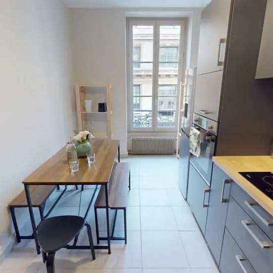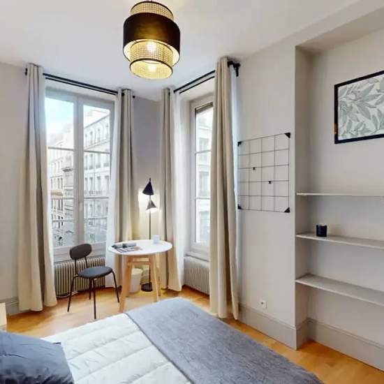 This lovely private bedroom in a fully equipped, furnished and all-inclusive flatshare in Lyon is a mix of comfort and design. It has got household furnishings, including a bed with pillows and duvet What is missing is your things to feel at home! The room can be locked if you need intimacy. The flatshare can be found in the Cordeliers neighborhood, in the heart of Lyon. Plenty of shops, public transports, restaurants are accessible close by. The apartment is on floor 3 with lift. It is entirely equipped and is composed of a large kitchen wi...