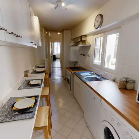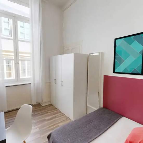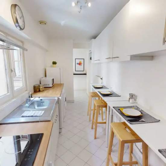 This lovely private bedroom in a fully equipped, furnished and all-inclusive flatshare in Lyon is a mix of comfort and design. It has got household furnishings, including a bed with pillows and duvet What is missing is your things to feel at home! The room can be locked if you need intimacy. The flatshare can be found in the Hôtel de Ville - Presqu'île neighborhood, in the heart of Lyon. Plenty of shops, public transports, restaurants are accessible close by. The apartment is on floor 2 with lift. It is entirely equipped and is composed of a...