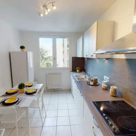 This lovely private bedroom in a fully equipped, furnished and all-inclusive flatshare in Lyon is a mix of comfort and design. It has got household furnishings, including a bed with pillows and duvet What is missing is your things to feel at home! The room can be locked if you need intimacy. The flatshare can be found in the Part Dieu neighborhood, in the heart of Lyon. Plenty of shops, public transports, restaurants are accessible close by. The apartment is on floor 3 with lift. It is entirely equipped and is composed of a large kitchen wit...