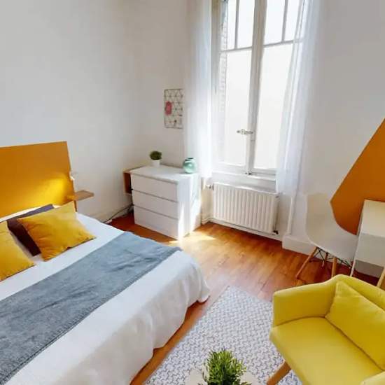 This lovely private bedroom in a fully equipped, furnished and all-inclusive flatshare in Lyon is a mix of comfort and design. It has got household furnishings, including a bed with pillows and duvet What is missing is your things to feel at home! The room can be locked if you need intimacy. The flatshare can be found in the Monchat neighborhood, in the heart of Lyon. Plenty of shops, public transports, restaurants are accessible close by. The apartment is on floor 0 without lift. It is entirely equipped and is composed of a large kitchen wi...