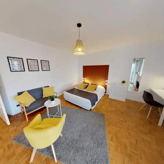 This lovely private bedroom in a fully equipped, furnished and all-inclusive flatshare in Lyon is a mix of comfort and design. It has got household furnishings, including a bed with pillows and duvet What is missing is your things to feel at home! The room can be locked if you need intimacy. The flatshare can be found in the Part Dieu neighborhood, in the heart of Lyon. Plenty of shops, public transports, restaurants are accessible close by. The apartment is on floor 2 with lift. It is entirely equipped and is composed of a large kitchen wit...