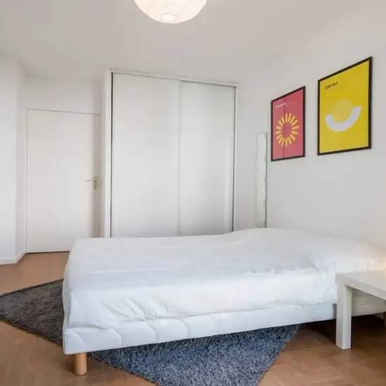 This lovely private bedroom in a fully equipped, furnished and all-inclusive flatshare in Lyon is a mix of comfort and design. It has got household furnishings, including a bed with pillows and duvet What is missing is your things to feel at home! The room can be locked if you need intimacy. The flatshare can be found in the Monchat neighborhood, in the heart of Lyon. Plenty of shops, public transports, restaurants are accessible close by. The apartment is on floor 4 with lift. It is entirely equipped and is composed of a large kitchen with ...