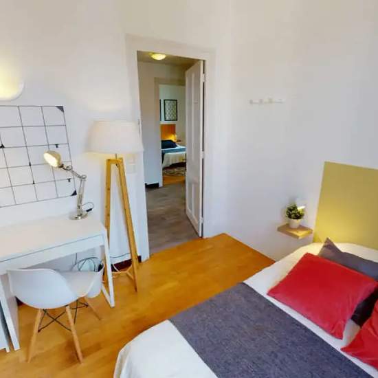This lovely private bedroom in a fully equipped, furnished and all-inclusive flatshare in Lyon is a mix of comfort and design. It has got household furnishings, including a bed with pillows and duvet What is missing is your things to feel at home! The room can be locked if you need intimacy. The flatshare can be found in the Monchat neighborhood, in the heart of Lyon. Plenty of shops, public transports, restaurants are accessible close by. The apartment is on floor 0 without lift. It is entirely equipped and is composed of a large kitchen wi...