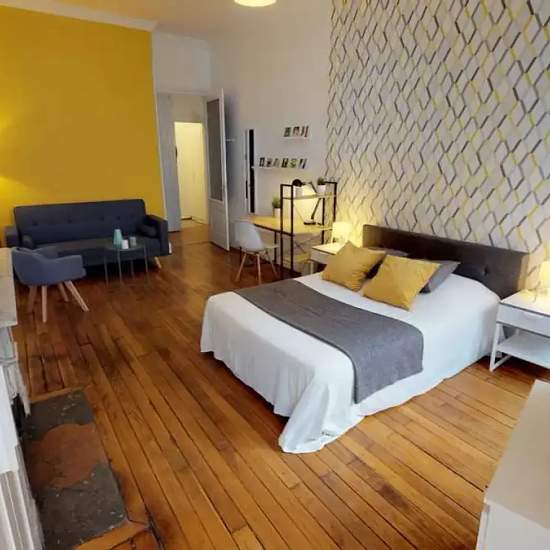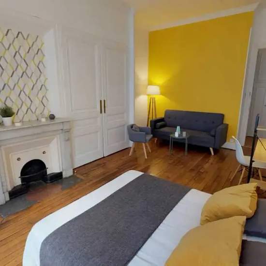 This lovely private bedroom in a fully equipped, furnished and all-inclusive flatshare in Lyon is a mix of comfort and design. It has got household furnishings, including a bed with pillows and duvet What is missing is your things to feel at home! The room can be locked if you need intimacy. The flatshare can be found in the Guillotière neighborhood, in the heart of Lyon. Plenty of shops, public transports, restaurants are accessible close by. The apartment is on floor 2 with lift. It is entirely equipped and is composed of a large kitchen w...