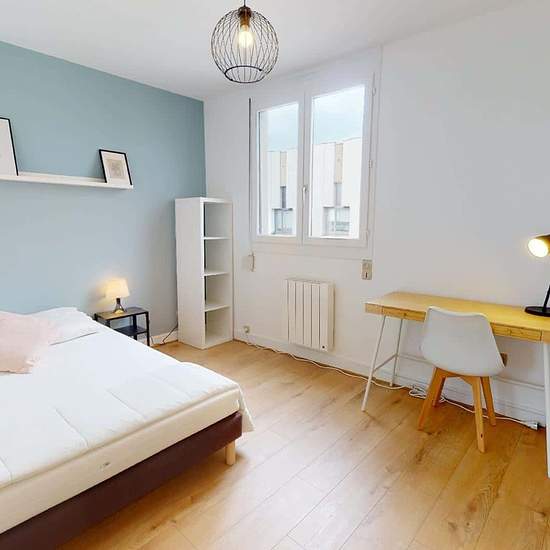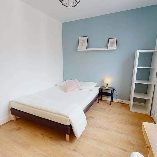 GRAND APPARTEMENT 5 PIÈCESDécouvrez cette colocation de 4 chambres de 92 m² située au 308 rue Paul Bert dans la commune de Lyon (69003). LA CHAMBRELa chambre 3 la plus grande de cette colocation est équipée avec un lit double, un bureau, une chaise, des étagères et un placard intégré. LES ESPACES COMMUNSCette colocation comporte un salon lumineux aménagé avec un canapé d'angle, une table à manger, une table basse et un meuble ainsi qu'une cuisine séparée.La cuisine est entièrement équipée et fonctionnelle. Elle comprend un micro-ondes, un fr...