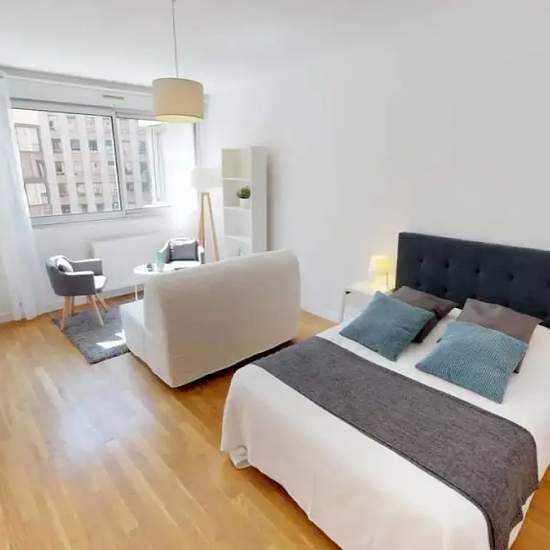 This lovely private bedroom in a fully equipped, furnished and all-inclusive flatshare in Lyon is a mix of comfort and design. It has got household furnishings, including a bed with pillows and duvet What is missing is your things to feel at home! The room can be locked if you need intimacy. The flatshare can be found in the Brotteaux neighborhood, in the heart of Lyon. Plenty of shops, public transports, restaurants are accessible close by. The apartment is on floor 4 with lift. It is entirely equipped and is composed of a large kitchen wit...