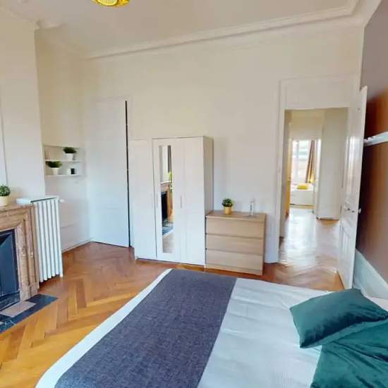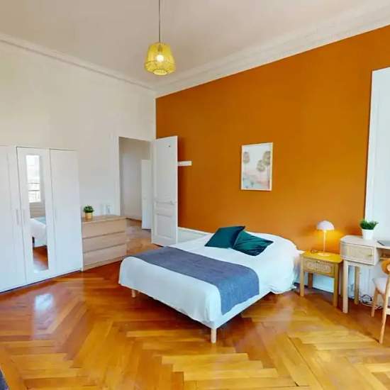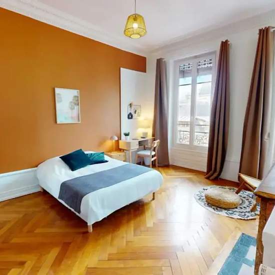 This lovely private bedroom in a fully equipped, furnished and all-inclusive flatshare in Lyon is a mix of comfort and design. It has got household furnishings, including a bed with pillows and duvet What is missing is your things to feel at home! The room can be locked if you need intimacy. The flatshare can be found in the Universités neighborhood, in the heart of Lyon. Plenty of shops, public transports, restaurants are accessible close by. The apartment is on floor 4 with lift. It is entirely equipped and is composed of a large kitchen w...