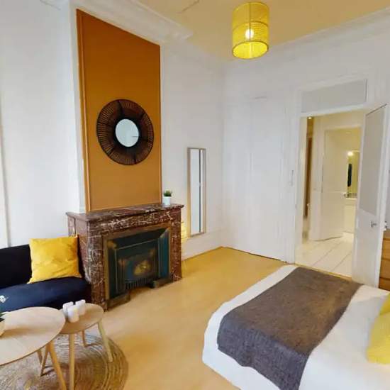 This lovely private bedroom in a fully equipped, furnished and all-inclusive flatshare in Lyon is a mix of comfort and design. It has got household furnishings, including a bed with pillows and duvet What is missing is your things to feel at home! The room can be locked if you need intimacy. The flatshare can be found in the Universités neighborhood, in the heart of Lyon. Plenty of shops, public transports, restaurants are accessible close by. The apartment is on floor 1 with lift. It is entirely equipped and is composed of a large kitchen w...