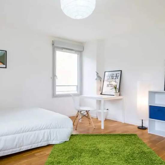 This lovely private bedroom in a fully equipped, furnished and all-inclusive flatshare in Lyon is a mix of comfort and design. It has got household furnishings, including a bed with pillows and duvet What is missing is your things to feel at home! The room can be locked if you need intimacy. The flatshare can be found in the Debourg - Gerland neighborhood, in the heart of Lyon. Plenty of shops, public transports, restaurants are accessible close by. The apartment is on floor 1 with lift. It is entirely equipped and is composed of a large kit...