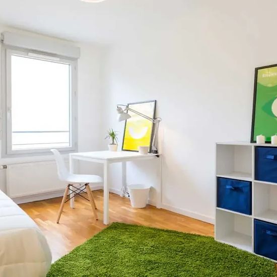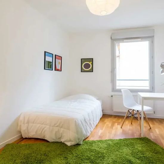 This lovely private bedroom in a fully equipped, furnished and all-inclusive flatshare in Lyon is a mix of comfort and design. It has got household furnishings, including a bed with pillows and duvet What is missing is your things to feel at home! The room can be locked if you need intimacy. The flatshare can be found in the Debourg - Gerland neighborhood, in the heart of Lyon. Plenty of shops, public transports, restaurants are accessible close by. The apartment is on floor 1 with lift. It is entirely equipped and is composed of a large kit...