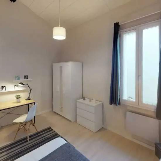 This lovely private bedroom in a fully equipped, furnished and all-inclusive flatshare in Montpellier is a mix of comfort and design. It has got household furnishings, including a bed with pillows and duvet What is missing is your things to feel at home! The room can be locked if you need intimacy. The flatshare can be found in the Gambetta neighborhood, in the heart of Montpellier. Plenty of shops, public transports, restaurants are accessible close by. The apartment is on floor 2 without lift. It is entirely equipped and is composed of a l...