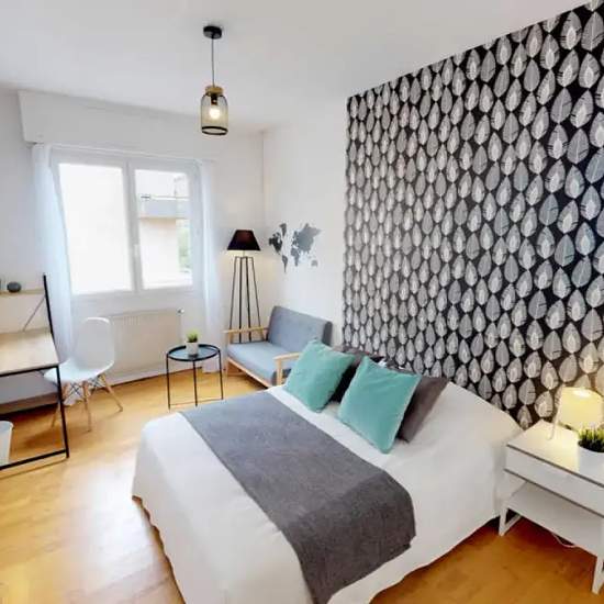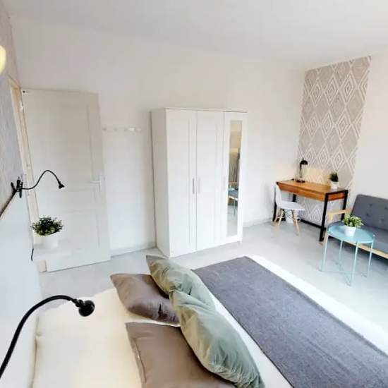 This lovely private bedroom in a fully equipped, furnished and all-inclusive flatshare in Montpellier is a mix of comfort and design. It has got household furnishings, including a bed with pillows and duvet What is missing is your things to feel at home! The room can be locked if you need intimacy. The flatshare can be found in the Gares neighborhood, in the heart of Montpellier. Plenty of shops, public transports, restaurants are accessible close by. The apartment is on floor 3 with lift. It is entirely equipped and is composed of a large k...