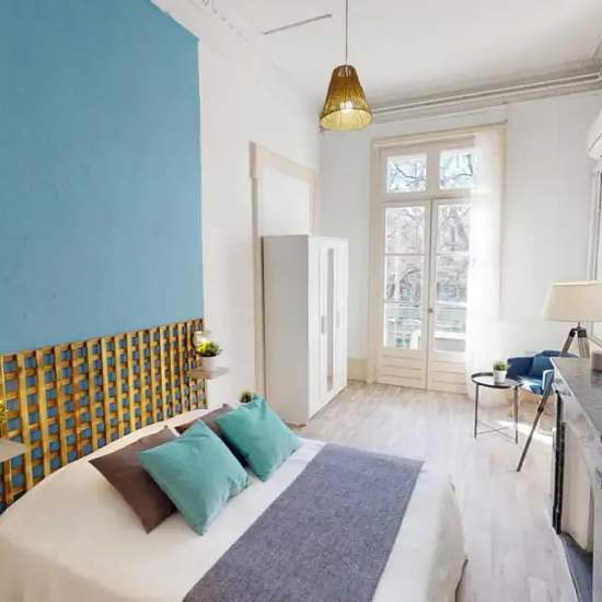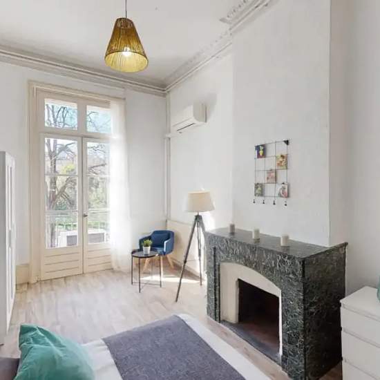 This lovely private bedroom in a fully equipped, furnished and all-inclusive flatshare in Montpellier is a mix of comfort and design. It has got household furnishings, including a bed with pillows and duvet What is missing is your things to feel at home! The room can be locked if you need intimacy. The flatshare can be found in the Gares neighborhood, in the heart of Montpellier. Plenty of shops, public transports, restaurants are accessible close by. The apartment is on floor 1 without lift. It is entirely equipped and is composed of a larg...