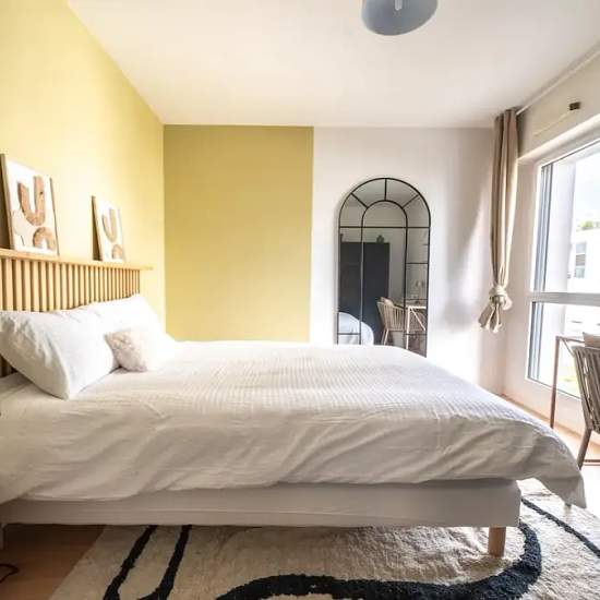 Make this 14 m² room your new home! Redesigned and refurnished in shades of white and yellow, this room is perfect for a long stay. Rented fully equipped, it features a sleeping area with a large bed and storage, as well as a work area with a desk. It also has a private balcony, perfect for enjoying spring and summer days Looking for a comfortable place to live in Île de Nantes? This room in a shared 5-bedroom apartment is fully furnished and equipped, providing a convenient living space. It features amenities like an elevator, equipped kitc...