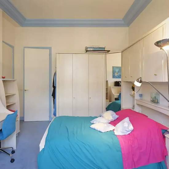 Bedroom 3 is furnished with a Queen sized bed. This room also has a heating unit, a desk, a TV, a chest of drawers, shelving and a standalone wardrobe. Spotahome presents 3 rooms available for females in a deluxe, 265m2, 5 bedroom apartment situated in the coveted Luxembourg area in Paris. Tenants will share this property with the landlord, his wife and occasionally their son. Located on Rue Blaise-Desgoffe, this luxury apartment can be found in the centre of Paris within walking distance from many famous landmarks. The property boasts a spa...