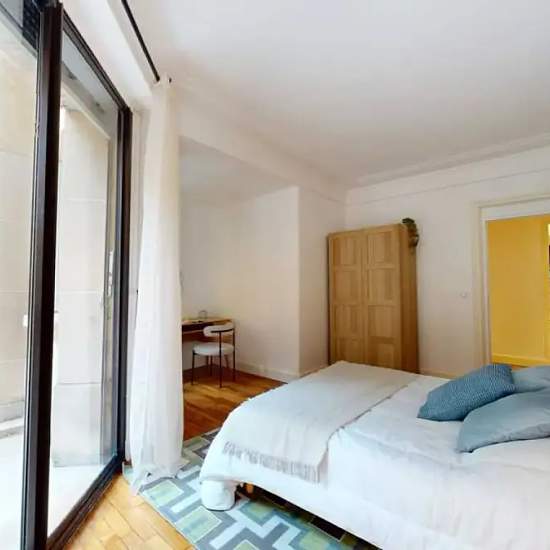 This lovely private bedroom in a fully equipped, furnished and all-inclusive flatshare in Paris is a mix of comfort and design. It has got household furnishings, including a bed with pillows and duvet What is missing is your things to feel at home! The room can be locked if you need intimacy. The flatshare can be found in the Champs Elysées neighborhood, in the heart of Paris. Plenty of shops, public transports, restaurants are accessible close by. The apartment is on floor 0 with lift. It is entirely equipped and is composed of a large kitc...
