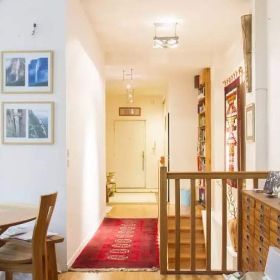 This split-level apartment on Rue Henner is on the ground floor. One of the bedrooms is occupied by the landlords. Otherwise, it’s a large and wonderful apartment. On the main floor, you’ll find a sleek and modern kitchen, a dining area, a spacious living room, and access to a garden patio. Downstairs is a more open concept, with a fully equipped kitchenette and a second living area with a sofa and TV. There is a bathroom on this floor, as well, as the bedroom that is being rented. This apartment is situated on Rue Henner, a quiet street loc...