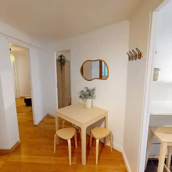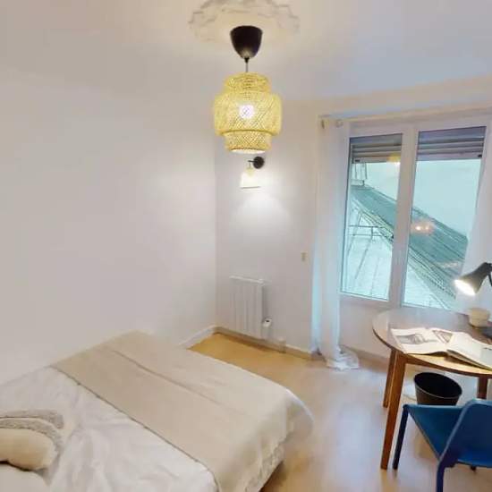 This lovely private bedroom in a fully equipped, furnished and all-inclusive flatshare in Paris is a mix of comfort and design. It has got household furnishings, including a bed with pillows and duvet What is missing is your things to feel at home! The room can be locked if you need intimacy. The flatshare can be found in the Faubourg Montmartre neighborhood, in the heart of Paris. Plenty of shops, public transports, restaurants are accessible close by. The apartment is on floor 1 without lift. It is entirely equipped and is composed of a la...