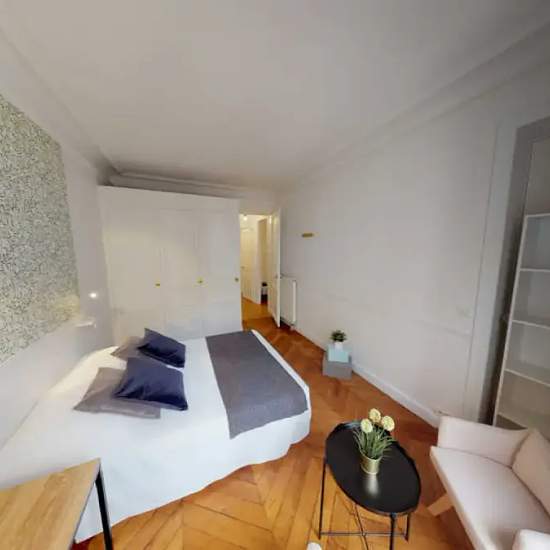 This lovely private bedroom in a fully equipped, furnished and all-inclusive flatshare in Paris is a mix of comfort and design. It has got household furnishings, including a bed with pillows and duvet What is missing is your things to feel at home! The room can be locked if you need intimacy. The flatshare can be found in the Ternes neighborhood, in the heart of Paris. Plenty of shops, public transports, restaurants are accessible close by. The apartment is on floor 2 with lift. It is entirely equipped and is composed of a large kitchen with...