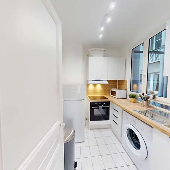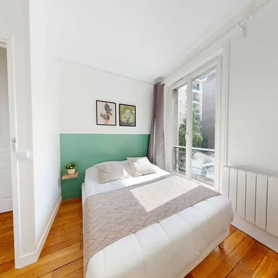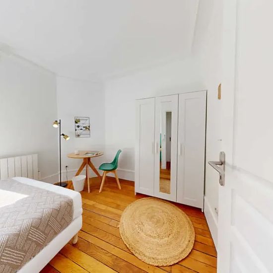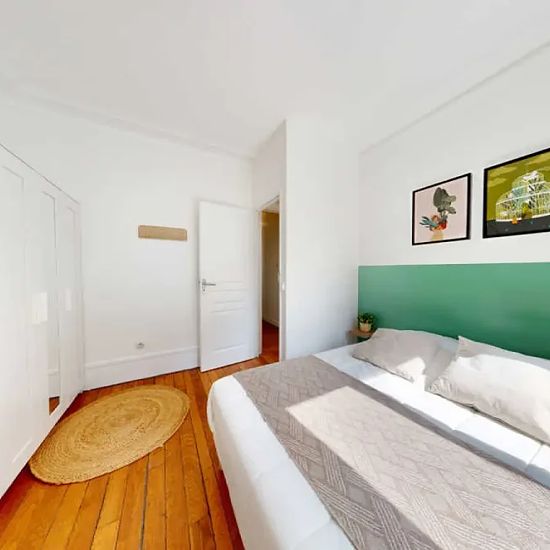 This lovely private bedroom in a fully equipped, furnished and all-inclusive flatshare in Paris is a mix of comfort and design. It has got household furnishings, including a bed with pillows and duvet What is missing is your things to feel at home! The room can be locked if you need intimacy. The flatshare can be found in the Grandes Carrières neighborhood, in the heart of Paris. Plenty of shops, public transports, restaurants are accessible close by. The apartment is on floor 2 without lift. It is entirely equipped and is composed of a larg...