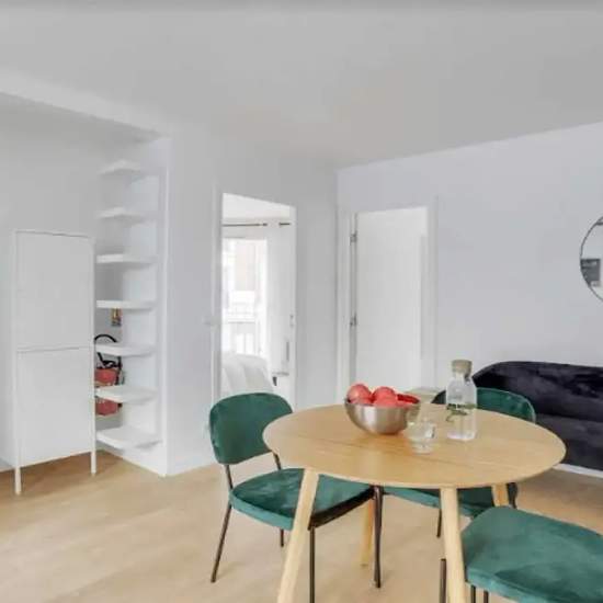This lovely private bedroom in a fully equipped, furnished and all-inclusive flatshare in Paris is a mix of comfort and design. It has got household furnishings, including a bed with pillows and duvet What is missing is your things to feel at home! The room can be locked if you need intimacy. The flatshare can be found in the Amérique neighborhood, in the heart of Paris. Plenty of shops, public transports, restaurants are accessible close by. The apartment is on floor 2 without lift. It is entirely equipped and is composed of a large kitchen...