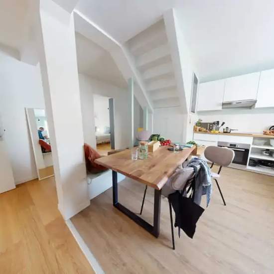 This lovely private bedroom in a fully equipped, furnished and all-inclusive flatshare in Paris is a mix of comfort and design. It has got household furnishings, including a bed with pillows and duvet What is missing is your things to feel at home! The room can be locked if you need intimacy. The flatshare can be found in the Amérique neighborhood, in the heart of Paris. Plenty of shops, public transports, restaurants are accessible close by. The apartment is on floor 3 without lift. It is entirely equipped and is composed of a large kitchen...