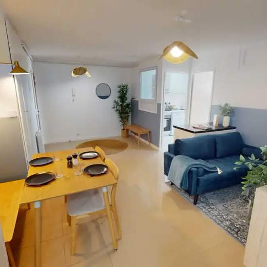 This lovely private bedroom in a fully equipped, furnished and all-inclusive flatshare in Paris is a mix of comfort and design. It has got household furnishings, including a bed with pillows and duvet What is missing is your things to feel at home! The room can be locked if you need intimacy. The flatshare can be found in the Pont de Flandre neighborhood, in the heart of Paris. Plenty of shops, public transports, restaurants are accessible close by. The apartment is on floor 4 with lift. It is entirely equipped and is composed of a large kit...