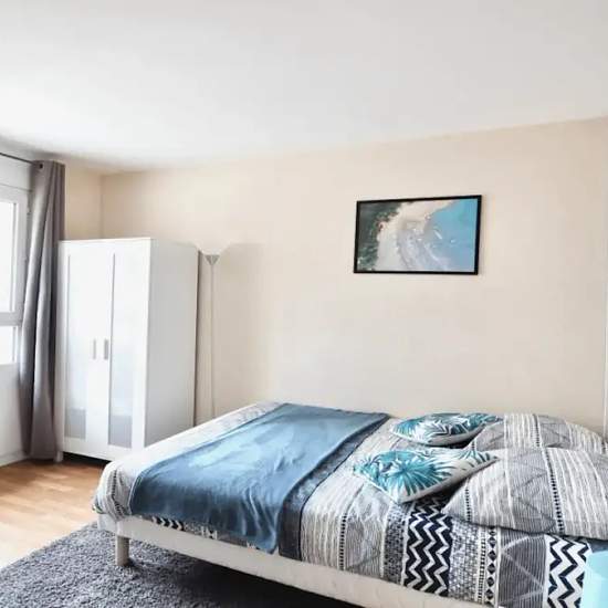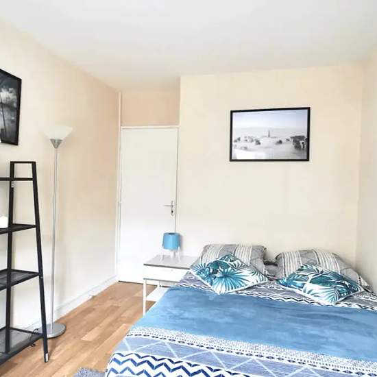 Room of 11m², fully furnished. It has a double bed (140x190) and a bedside table with lamp. A working area is included, composed of a desk with chair and lamp. The room also has storage space: a wardrobe with hanging space and a shelf. Located in the 20th arrondissement of Paris, in the Saint Blaise district, this 80m² apartment benefits from an ideal location, a stone's throw from the Père Lachaise Cemetery and close to all amenities. The apartment is on the 2nd floor of a building with an elevator and secured with a badge system and a guar...