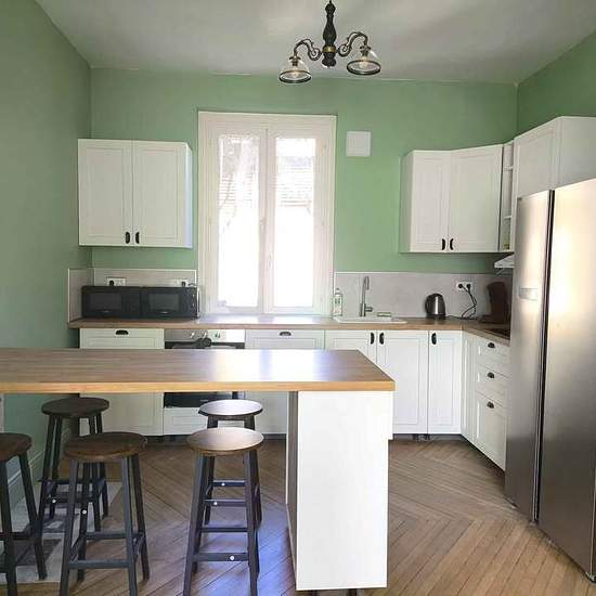 4 Chambres en colocation dans une maison de maître avec jardin. Chaque chambre possède un bureau, un lit de 140 x 200 cm et une penderie avec miroir.