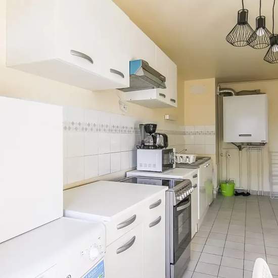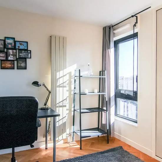 14m² room, fully furnished. It has a double bed (140x190) and a bedside table with lamp. A working area is included, composed of a desk with chair and lamp. The room also offers several storage spaces: a wardrobe with hanging space and a shelf. The main feature of this room is its access to the balcony. Located in Les Martinets district, this 116m² apartment is ideally located, close to the Patio shopping center and the RER station and near all amenities. The apartment is on the 4th floor of a secure building with digicodes and an elevator. ...